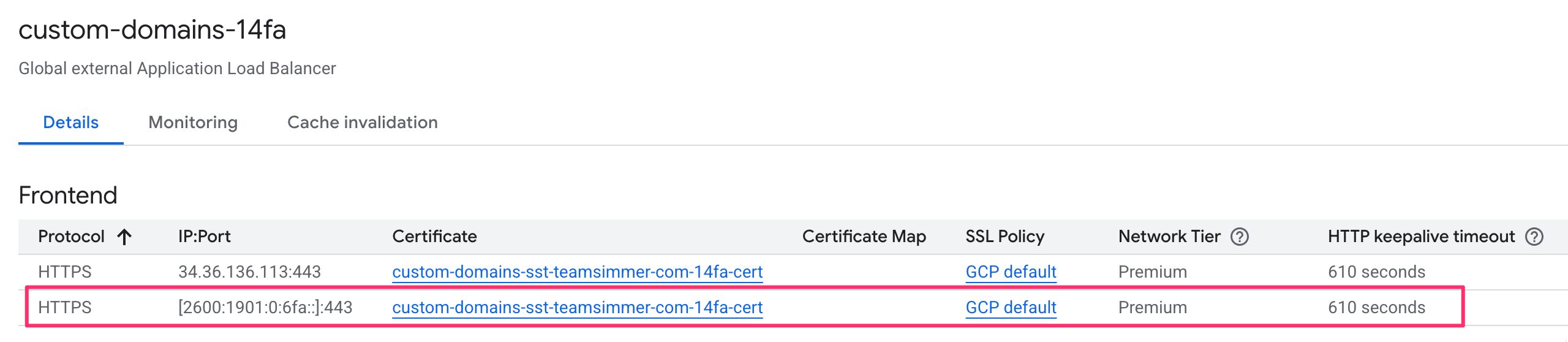 If you’re using a self-managed certificate, make sure the certificate’s Subject Alternative Name (SAN) already covers your sGTM subdomain. Since the same certificate is attached to both frontends, this should already be the case.