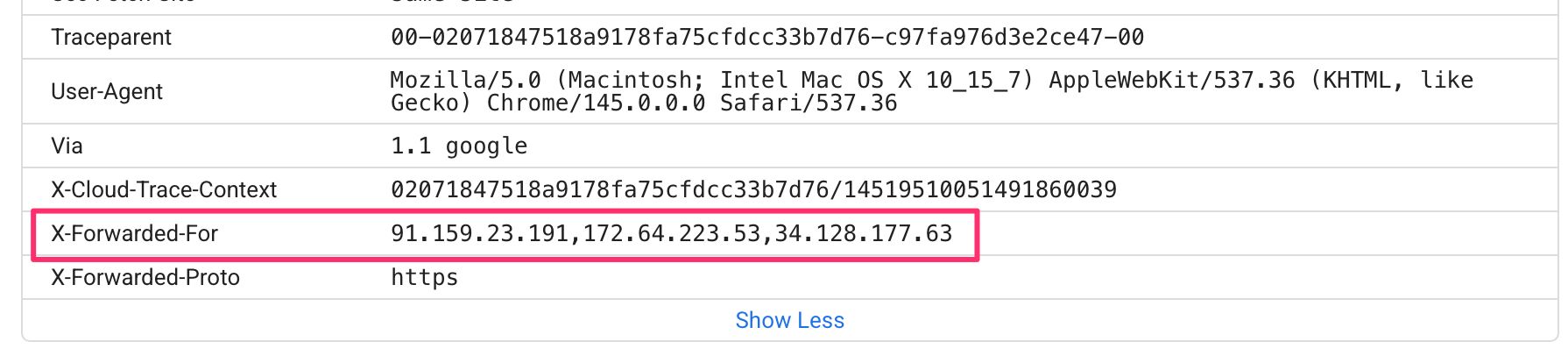 When SGTM receives a request, it reads the client IP address from the incoming connection. The load balancer forwards this via the X-Forwarded-For header. The official Meta CAPI tag template (and most other vendor templates) reads this header and uses the value as the client_ip_address parameter in the outgoing server-to-server request to Meta’s API.