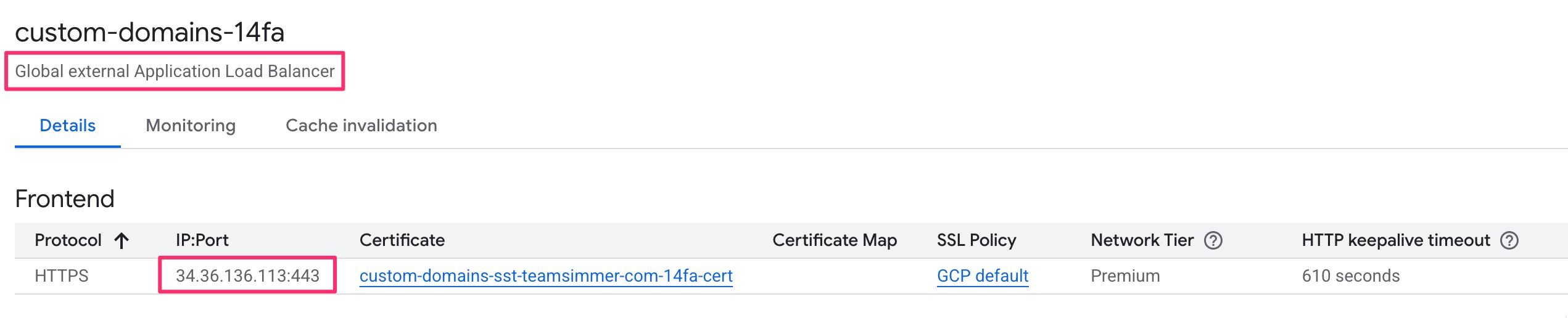 - A Global External Application Load Balancer fronting that deployment, with an HTTPS frontend and a valid SSL certificate