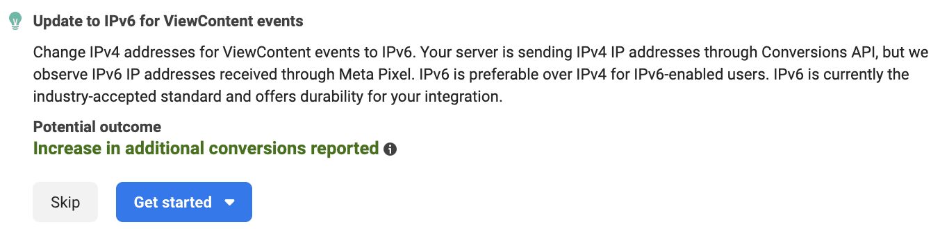 For most of your visitors, that’s fine. But for users on IPv6 networks, it creates a silent data quality problem that directly affects how well vendor tags like Meta’s Conversions API (CAPI) can match server-side events to their client-side counterparts.