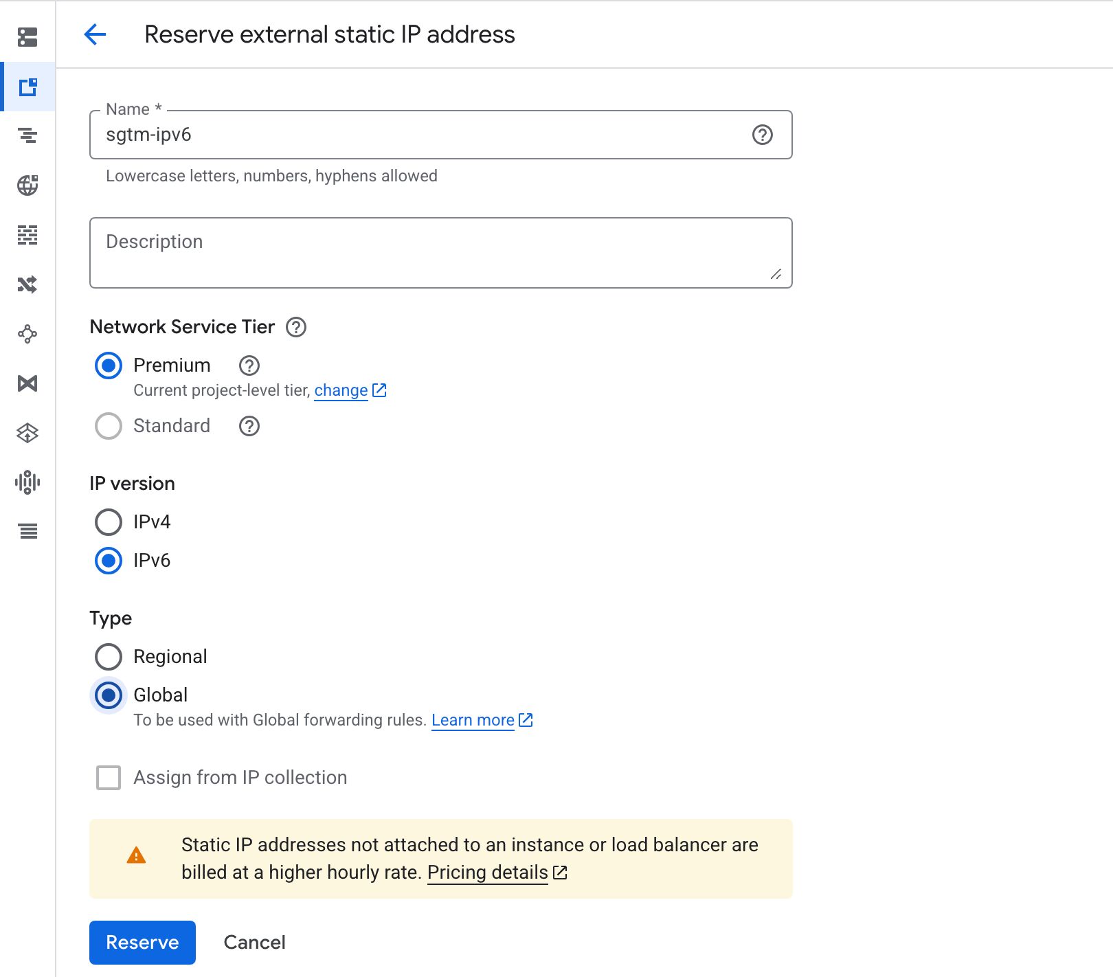 Step 1: Reserve a static external IPv6 address