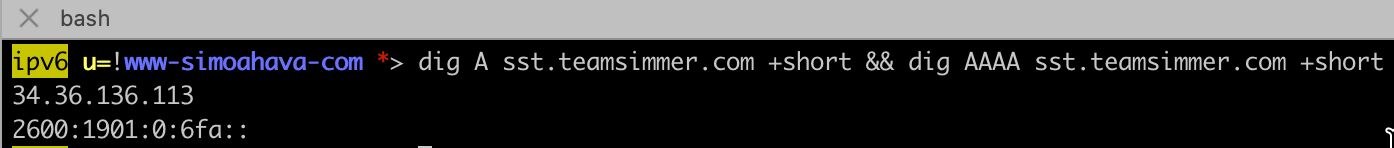 dig AAAA sst.yourdomain.com +shortTest IPv6 connectivity